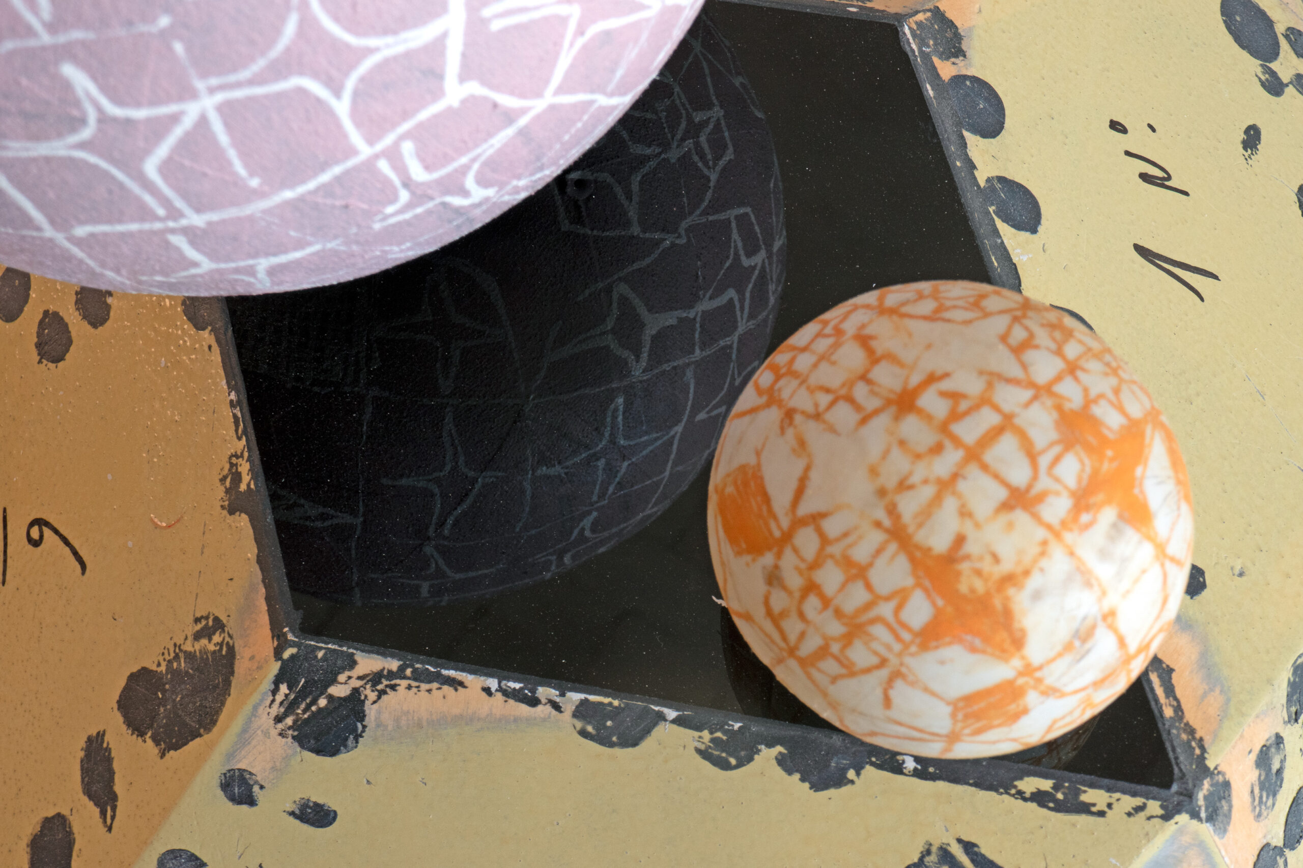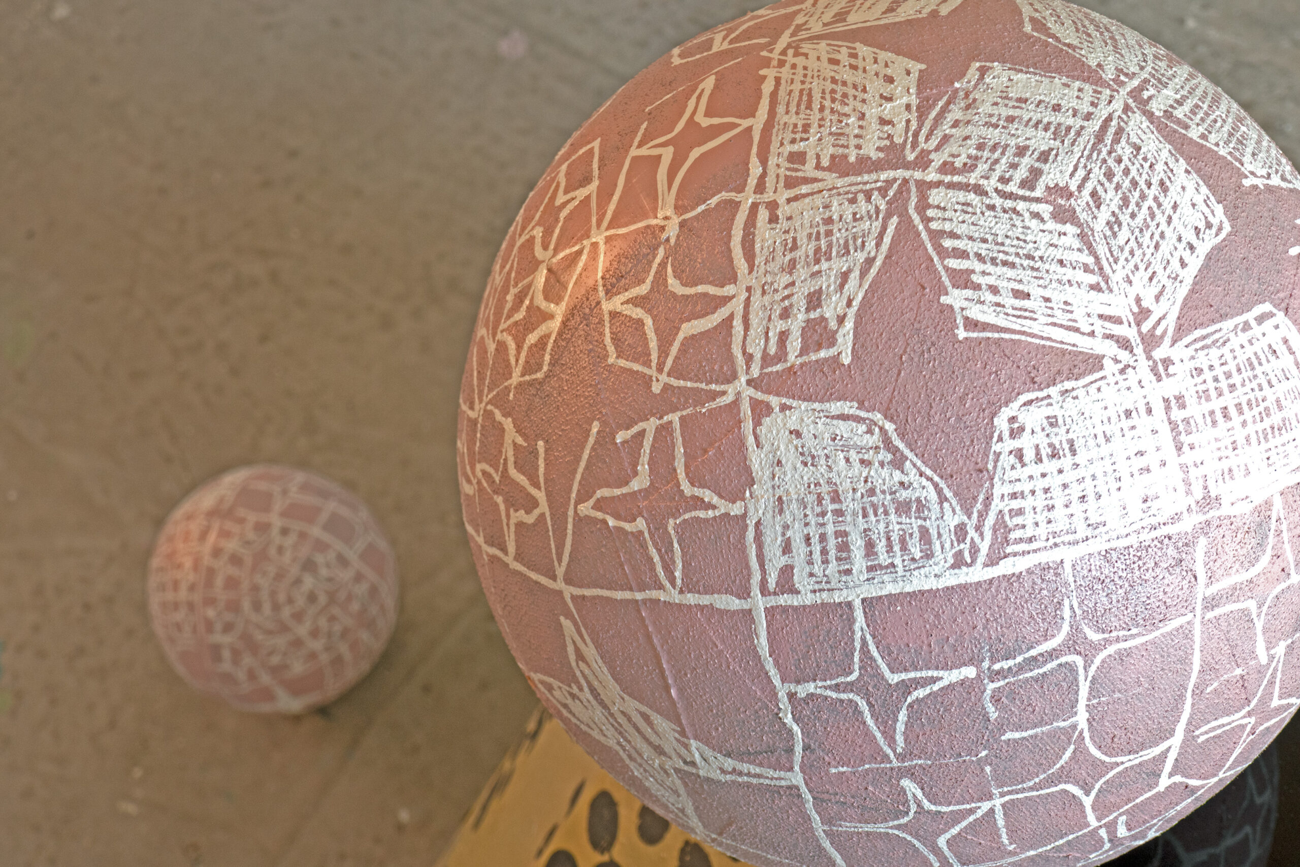 Spherical forms: Paint on rubber and plastic